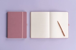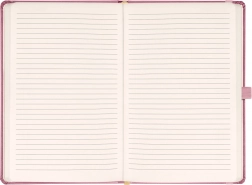 Tento notes v růžovém provedení kombinuje klasiku a eleganci, což z něj činí skvělou volbu pro každou příležitost. Jeho povrchová struktura umožňuje snadné ražení firemních log. Rozměry 15 x 21 cm poskytují dostatek místa pro vaše myšlenky a plány.