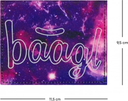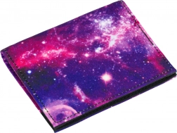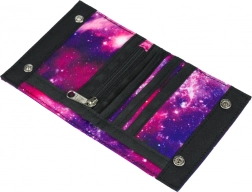 Praktická studentská peněženka s motivem galaxy nabízí kompaktní rozměry, bezpečné zavírání na 2 patentky, kapsičku na mince na zip a přihrádky na karty i doklady – vše přehledně na jednom místě.