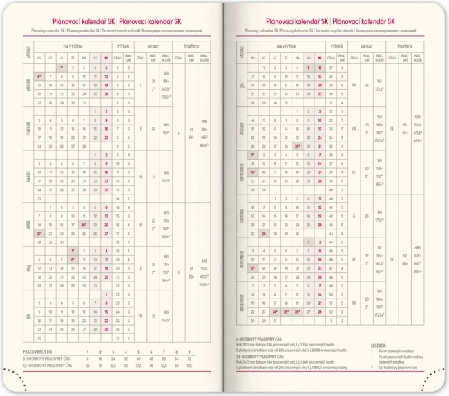 • Pracovní plánovací kalendář