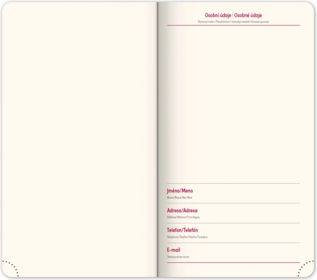 Díky svému kompaktnímu rozměru 9 x 15,5 cm je diář snadno přenosný a perfektně se vejde do každé tašky či kabelky.