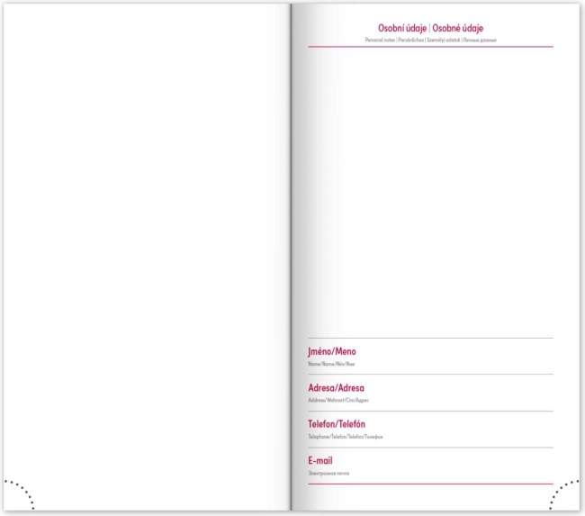 - Prostor pro poznámky a osobní údaje.