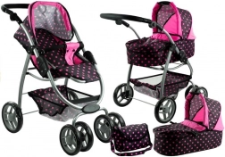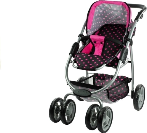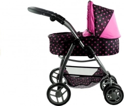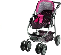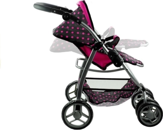 Kočárek Alice 2v1 v černo-růžovém designu kombinuje styl a funkčnost. Je navržen tak, aby vypadal jako skutečný kočárek, což podpoří zodpovědnost a empatii u malých matek při hraní. Změny mezi hlubokou korbou a sportovní sedačkou přidávají na zábavě a rozvíjí interpersonální dovednosti, fantazii a kreativitu dětí.