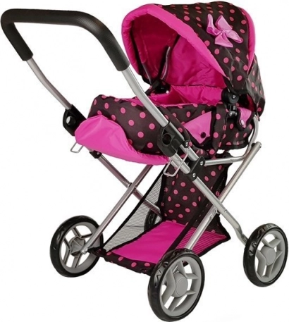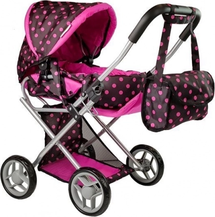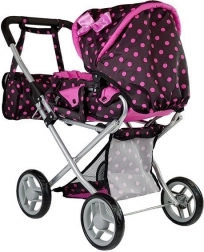 Kočárek Alice pro panenky je lehký, snadno ovladatelný a skvělý pro všechny malé "maminky". Konstrukce je z odolného kovu, což zajišťuje stabilitu a dlouhou životnost. Černo-růžový design s puntíky dodává kočárku elegantní vzhled, zatímco skládací funkce umožňuje snadné přenášení a skladování.