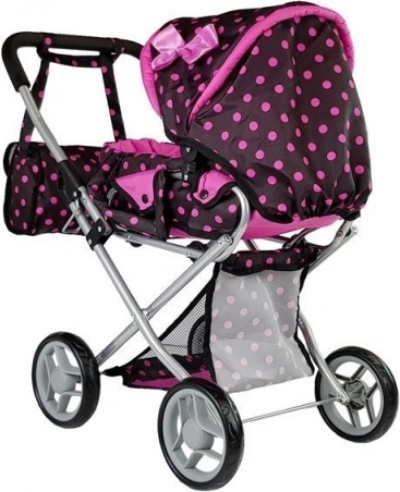 Černo-růžový vzhled s puntíky a růžovou mašlí dodává kočárku moderní a přitažlivý vzhled.
