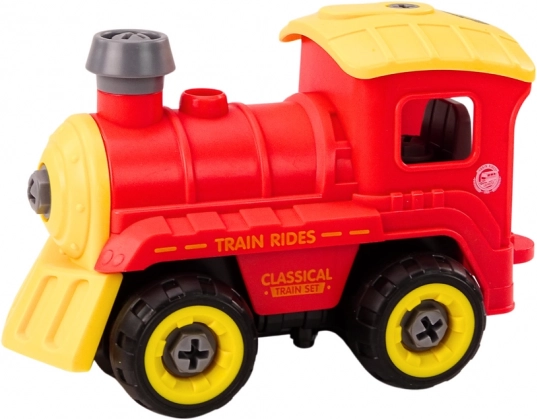 Tato červeno‑žlutá rozebíratelná lokomotiva promění hru v kreativní dílnu – děti si stroj samy složí pomocí šroubováku a poté jej mohou řídit vrtačkou fungující jako dálkový ovladač. Realistické zvuky vlaku a motoru umocňují zážitek z jízdy a podporují fantazii.