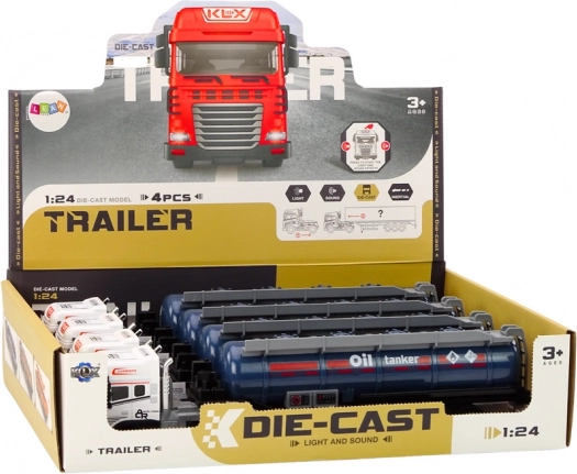 Realistický model cisternového kamionu v měřítku 1:24 nabízí dětem napínavou a poučnou hru. Díky odpojitelnému přívěsu, světelným a zvukovým efektům (start motoru a couvání) a pohonu umožňujícímu samostatný pohyb si děti užijí mnoho zábavy. Model má detailní provedení s bílou kabinou a splňuje CE a EN71, vhodné pro děti od 3 let.