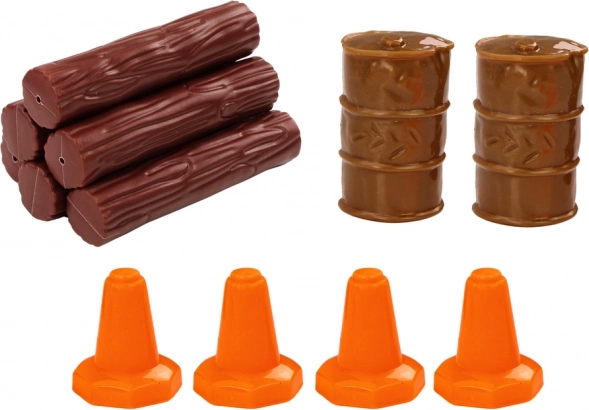 - Náklad a příslušenství: klády, 4 kužely, 2 sudy.