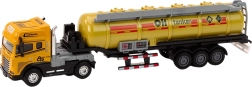 Realistický model cisternové nákladní soupravy v měřítku 1:24 potěší malé řidiče i sběratele. Nabízí autentické světelné a zvukové efekty, odpojitelný návěs a pohonný mechanismus pro samostatný pohyb. Díky detailnímu zpracování a robustní konstrukci je ideální pro zábavu i rozvoj fantazie a logického myšlení dětí.
