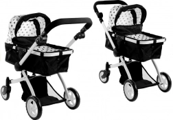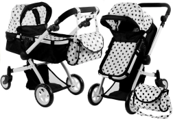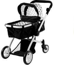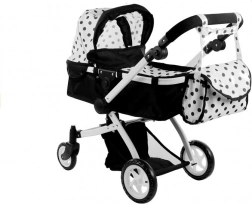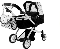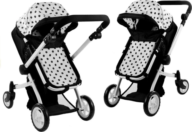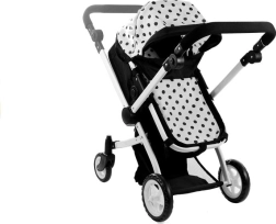 Kočárek pro panenky ALICE v elegantním černo‑bílém designu s puntíky nabízí univerzální řešení 2v1 – během chvilky přepnete z hluboké korby na sportovní sezení. Lehký a přitom pevný rám z hliníkových trubek, pěnová a gumová kola pro tichou jízdu po bytě i plynulou jízdu venku a blokace proti samovolnému složení zajišťují bezpečnou a pohodlnou hru.