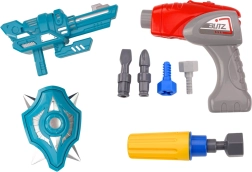 Set obsahuje bezpečné dětské nářadí – vrtačku a šroubovák – s výměnnými nástavci pro různorodé úkoly. Díky světelným a zvukovým efektům je hra ještě poutavější. Robot má také turkysový štít a zbraň, takže si děti mohou vymýšlet vlastní mise a příběhy a rozvíjet fantazii.