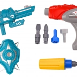 - Vrtačka, šroubovák, 3 výměnné nástavce, štít, zbraň