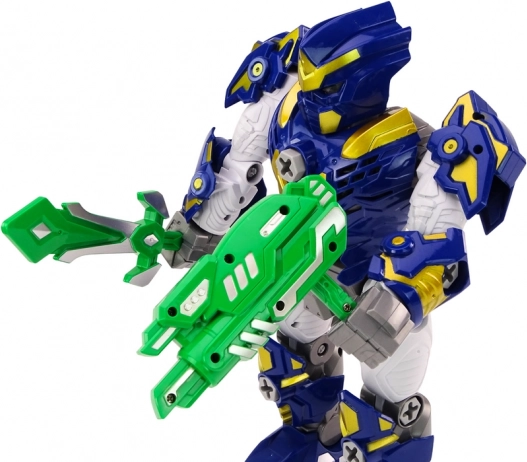 Robot je vybaven mečem a zbraní pro napínavé mise. Barevné provedení a pohyblivé části podněcují fantazii a kreativní hru.