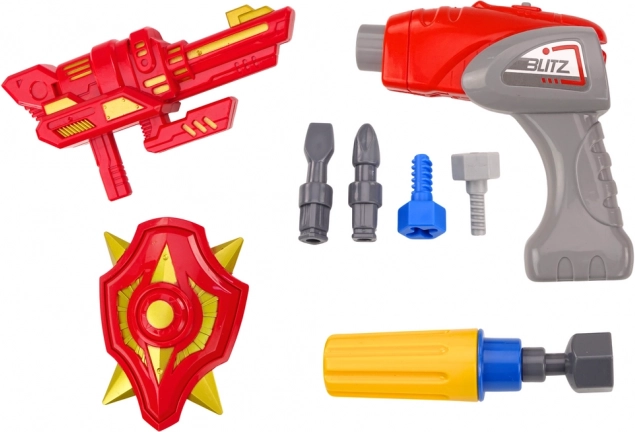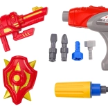 - Robot, dětská vrtačka, šroubovák, 3× výměnný nástavec, štít a doplňky