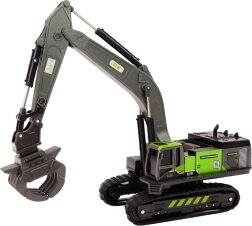 Pásový bagr s kovovým drapákem, lyžinou nebo vrtákem je ideální hračkou pro všechny malé příznivce stavebních strojů. Díky svým sytým barvám, kdy černá kontrastuje se zelenými prvky, působí dynamickým a atraktivním dojmem. Konstrukce je vyrobena s důrazem na detail, což hračce dodává realistický vzhled.