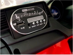 Interiér s podsvětlenou palubní deskou a multimediálním panelem podporuje MP3/USB/TF. Volant s klaksonem a hudebním tlačítkem zaručuje ještě větší porci zábavy.