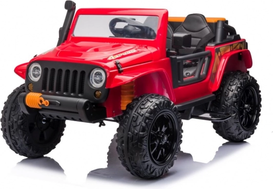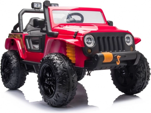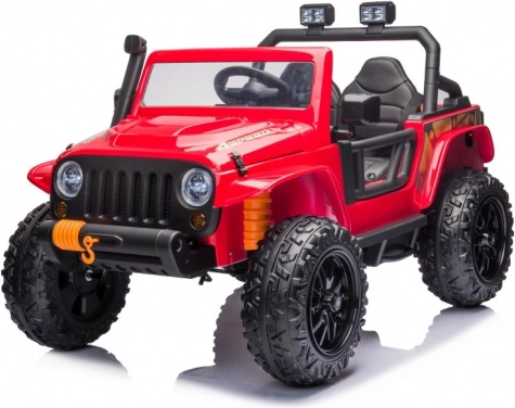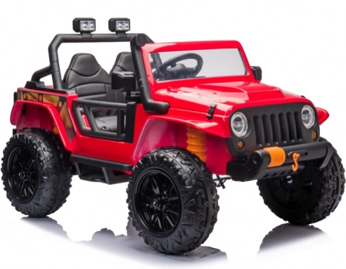 Stylové dětské elektrické auto v červené barvě nadchne malé řidiče realistickým vzhledem a robustním provedením. Nabízí pohodlné sezení pro dvě děti, velká terénní kola a bezpečnostní pásy pro klidnou jízdu. Ideální pro venkovní dobrodružství i domácí dvorek. Terénní design, realistické detaily a bezpečné sezení dělají z tohoto vozítka skvělý dárek pro aktivní děti.