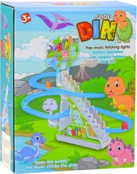 Po sestavení skluzavky děti umístí malé figurky dinosaurů na schůdky, které jsou nedílnou součástí hračky. Po aktivaci začnou dinosauři díky speciálnímu mechanismu stoupat po schůdcích nahoru. Poté se po skluzavce sklouznou dolů, čímž si děti užijí spoustu zábavy a podpoří další hru. Mechanismus je jednoduchý, ale fascinující pro malé děti, které mohou dinosaury sledovat při lezení a klouzání celé hodiny, což dále rozvíjí jejich trpělivost a soustředění.