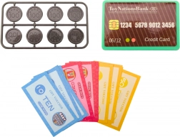 Set zahrnuje nákupní košík, mince, bankovky a platební kartu, což umožňuje autentickou a edukativní hru.