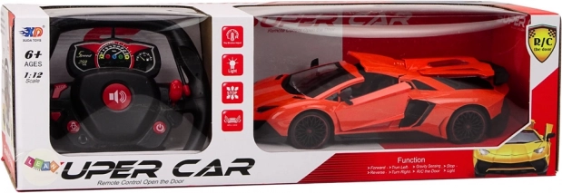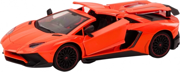Oranžová karoserie s detailem černých prvků vytváří autentický vzhled sportovního auta. Všechny dveře jsou otevíratelné a přidávají na realističnosti.