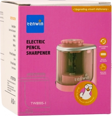 Růžové elektrické ořezávátko TENWIN je praktický pomocník pro žáky, studenty, umělce i do kanceláře. Je určeno pro tužky a pastelky o průměru 6–8 mm a poskytuje hladké, rovnoměrné ostření s minimem námahy. Průhledná nádobka usnadňuje kontrolu plnosti, zatímco bezpečnostní zámek víčka brání náhodnému vysypání odřezků.