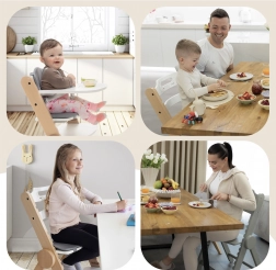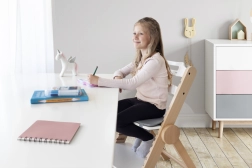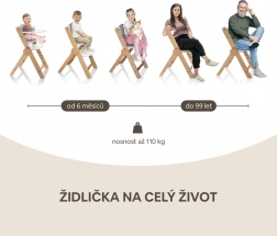 Nastavitelný sedák i podnožka ve 11 polohách zajistí správné držení těla od batolete po dospělého a pohodlné sezení ve výšce stolu.
