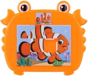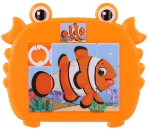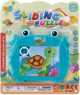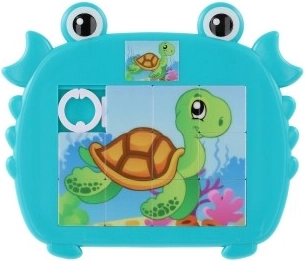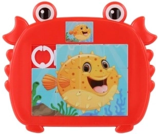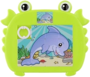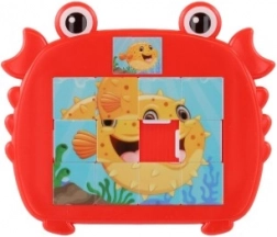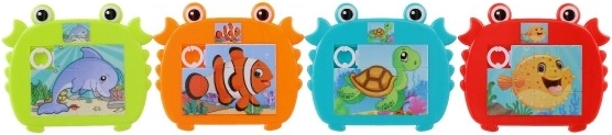 Veselé a barevné dětské posuvné puzzle ve tvaru kraba s motivy mořských zvířátek. Zábava a rozvojové dovednosti pro malé šikovné prstíky díky atraktivním mořským motivům.