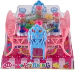 Veselé růžové a modré prvky s bílým stolem vytvářejí atraktivní mix barev. Realisticky zpracované mini doplňky dodají hře na restauraci ten správný šmrnc.