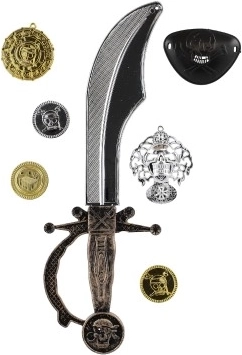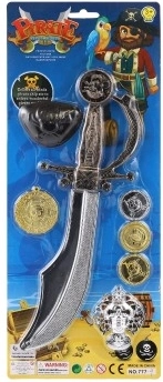 Proměňte každý den v malé dobrodružství na moři. Pirátská sada nabízí vše, co malý pirát potřebuje k nápadité hře – od lehkého plastového meče přes oční pásku až po pir átské mince. Díky bezpečnému provedení a nízké hmotnosti se doplňky snadno drží i menším dětem.