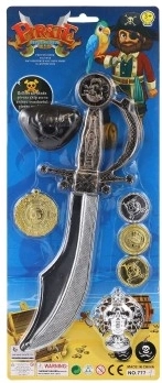 Set zahrnuje plastový meč, oční pásku a pirátské mince – vše, co děti potřebují k okamžitému vstupu do světa dobrodružství. Skvělé pro kostýmy i každodenní hru.