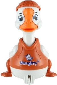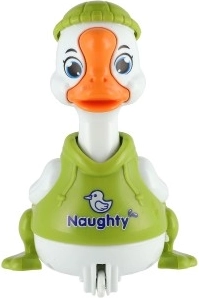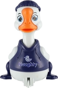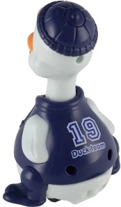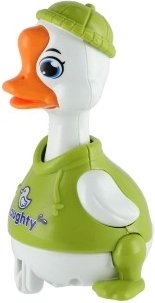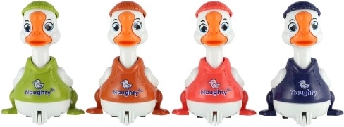 Jednoduchý mechanismus setrvačníku: stiskni hlavu kačera a rozjede se vpřed bez baterií. Skvělá zábava a rozvoj motoriky.