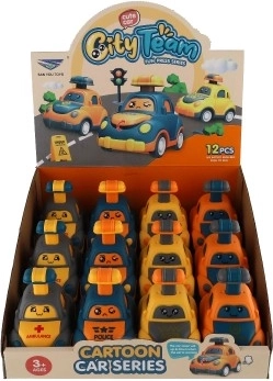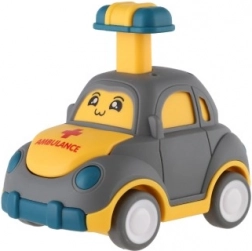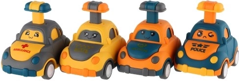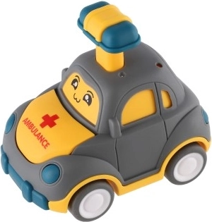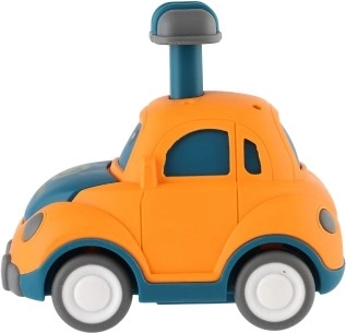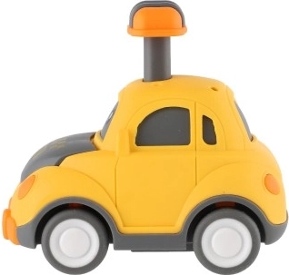 Roztomilé plastové autíčko s obličejem potěší každého malého závodníka. Stačí zmáčknout páčku na střeše a autíčko se samo rozjede díky setrvačníku. Kompaktní velikost 9 cm je ideální do dětské ruky, bezpečné provedení a čtyři různé varianty (policie, ambulance, taxi aj.) podněcují fantazii a motoriku. Vhodné pro děti od 3 let.
