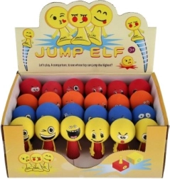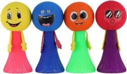 Postavte tělo postavičky na stůl nebo podlahu, stlačte a uvolněte. Míček se odrazí a vytvoří efektní skok. Skvělé pro koordinační hry, drobné soutěže i jako anti‑stresová pomůcka.