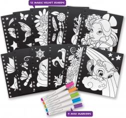 Magické omalovánky Nebulous Stars přinášejí uklidňující a zábavné tvoření. Sametový povrch zvýrazňuje linie obrázků a pomáhá vytvářet působivé výsledky i začátečníkům. Díky kompaktním mini fixům a přiloženým barevným pokynům je vše připraveno k okamžitému malování.