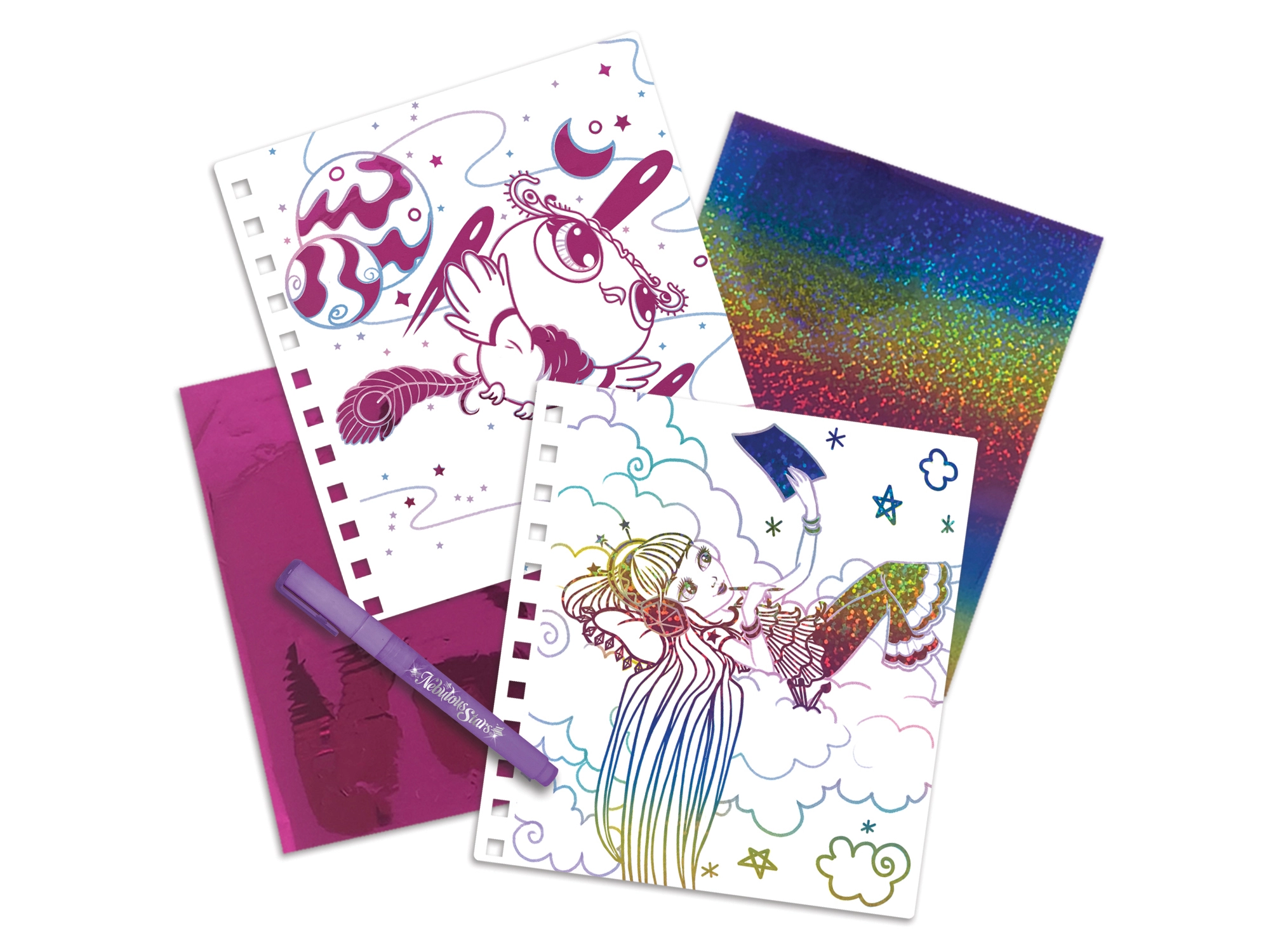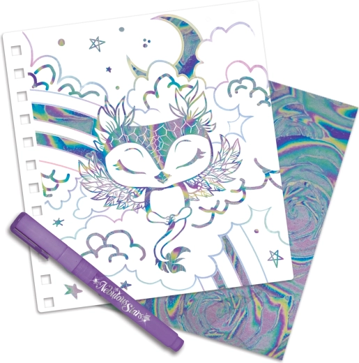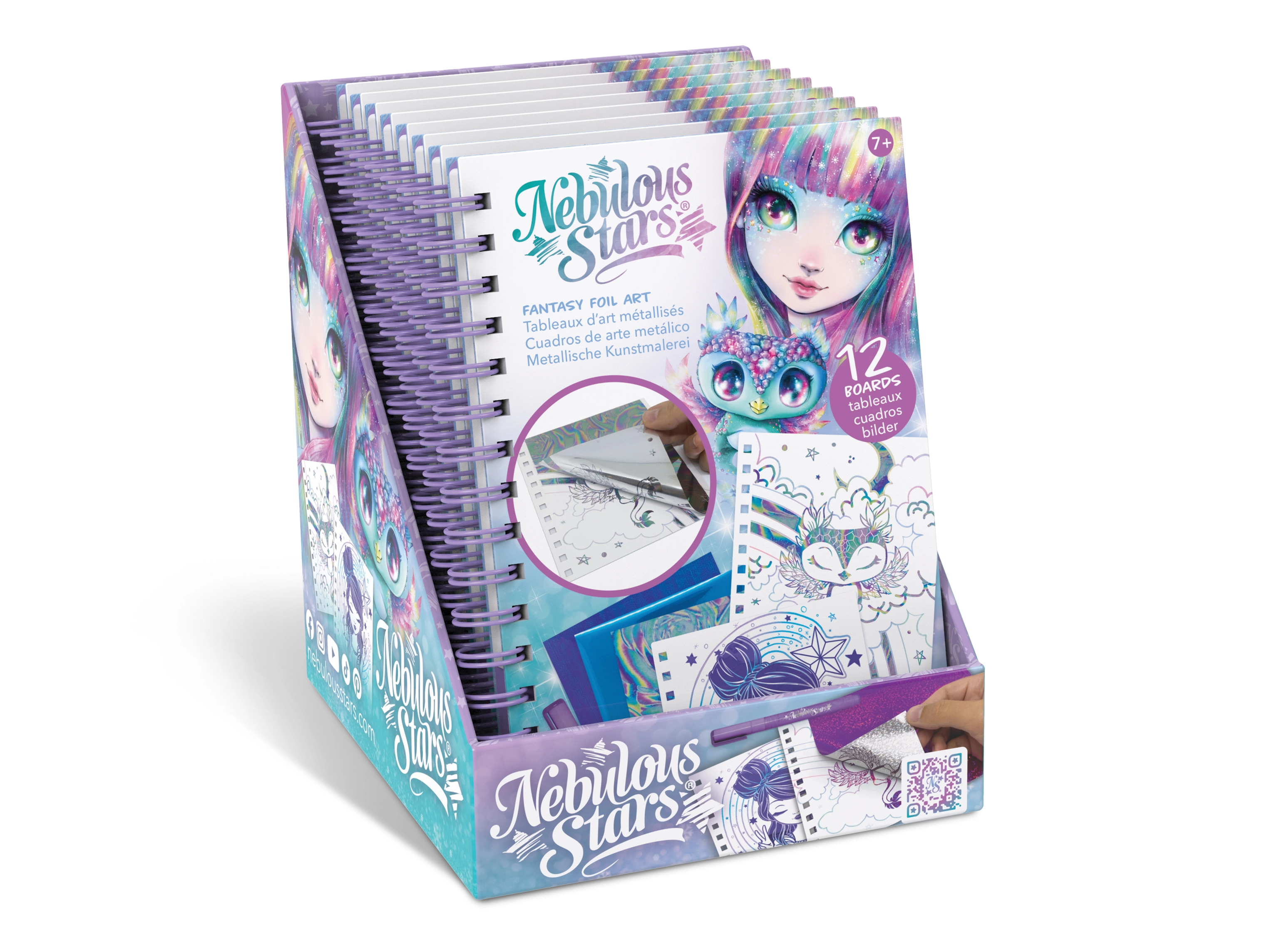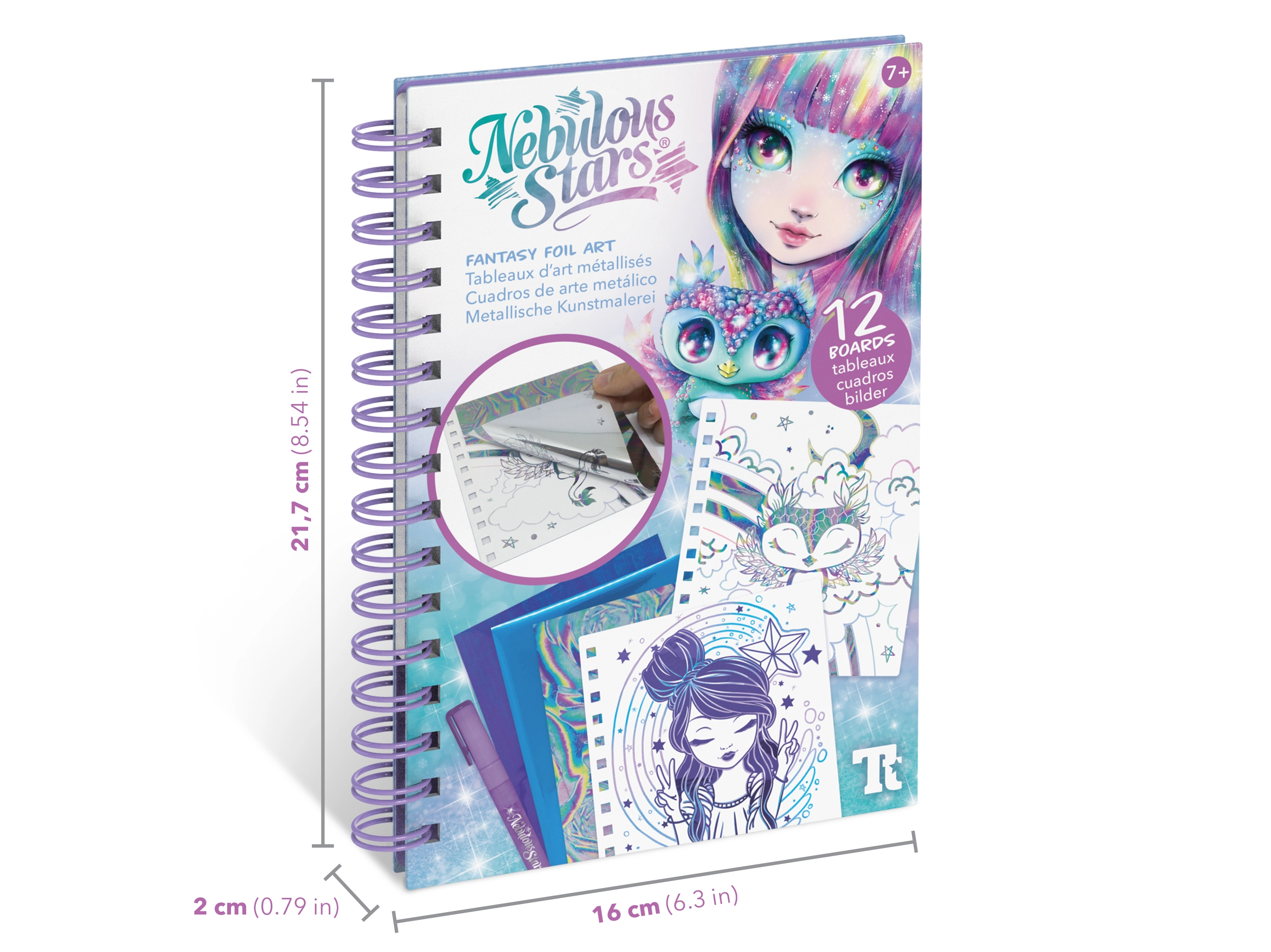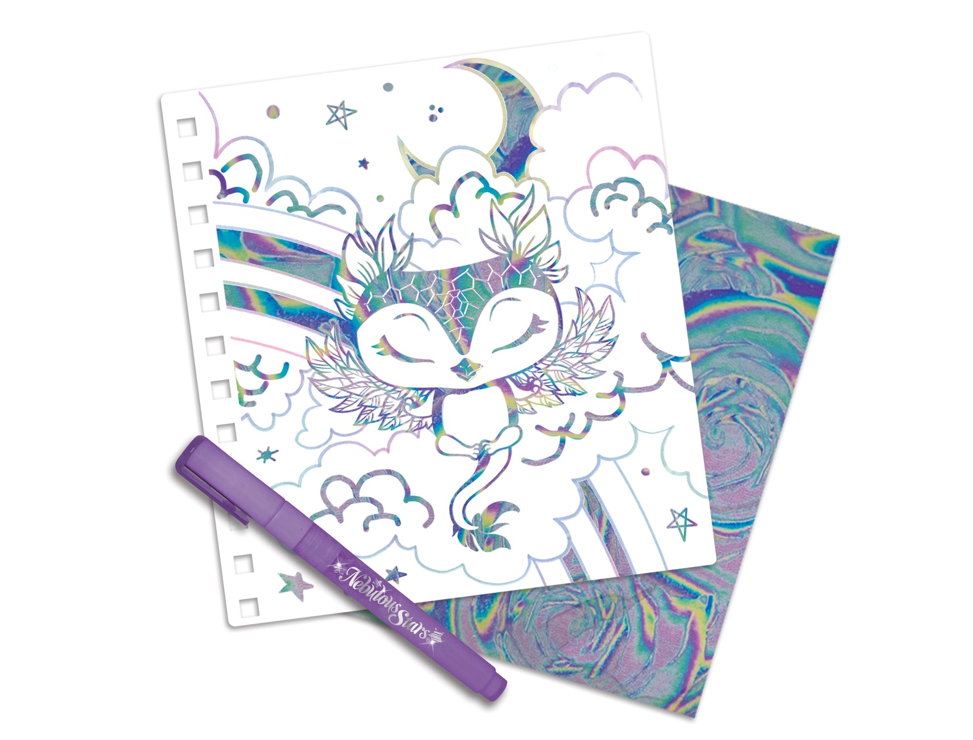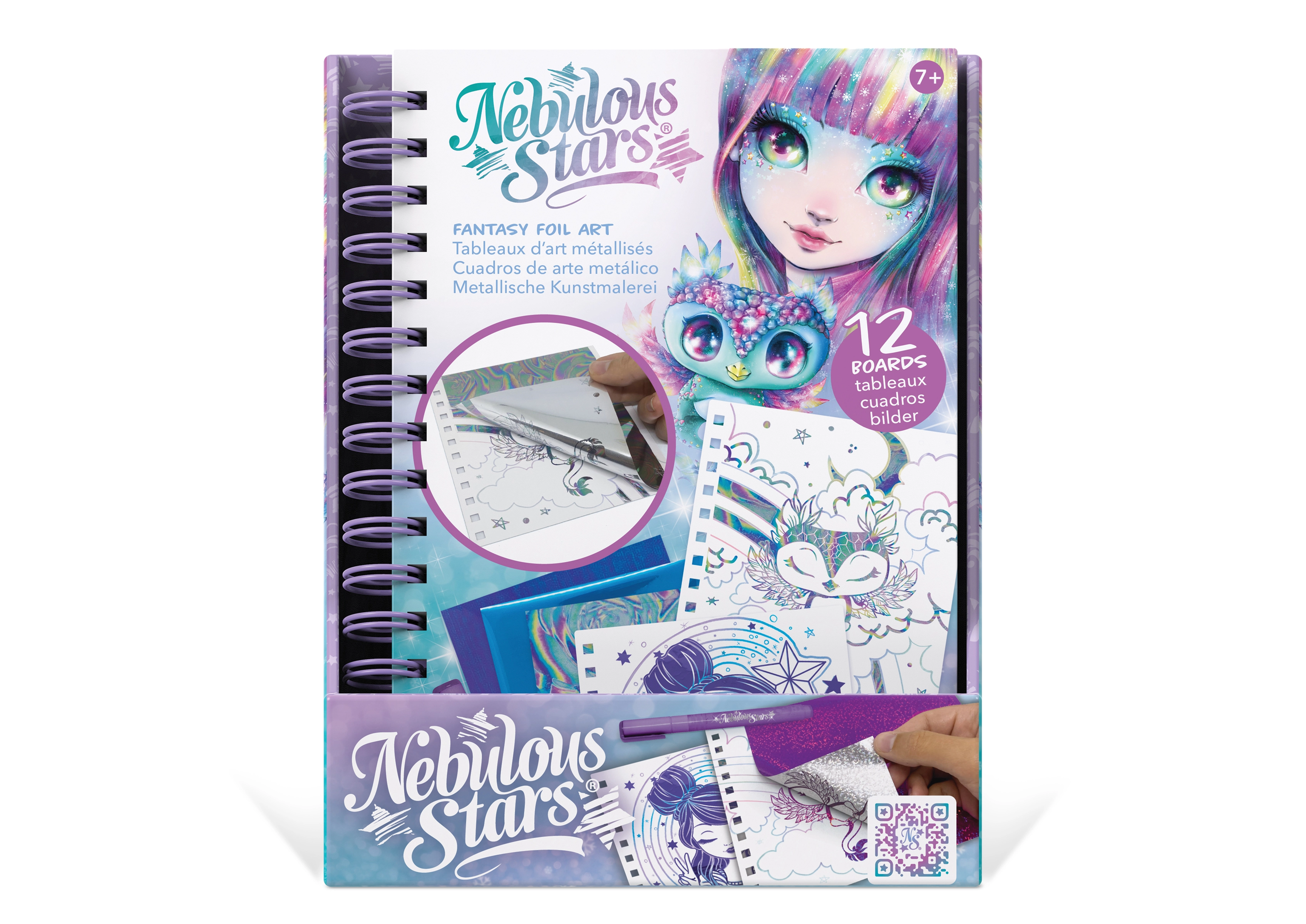 Tato originální výtvarná sada propojuje kouzelný svět NEBULOUS STARS s jednoduchou technikou dekorování pomocí metalických fólií. Stačí nanést lepidlo perem, přiložit fólii a jemně stáhnout – vznikne zářivý, třpytivý efekt, který promění každý obrázek v malé umělecké dílo.