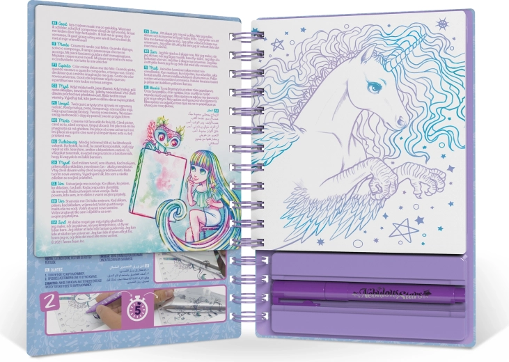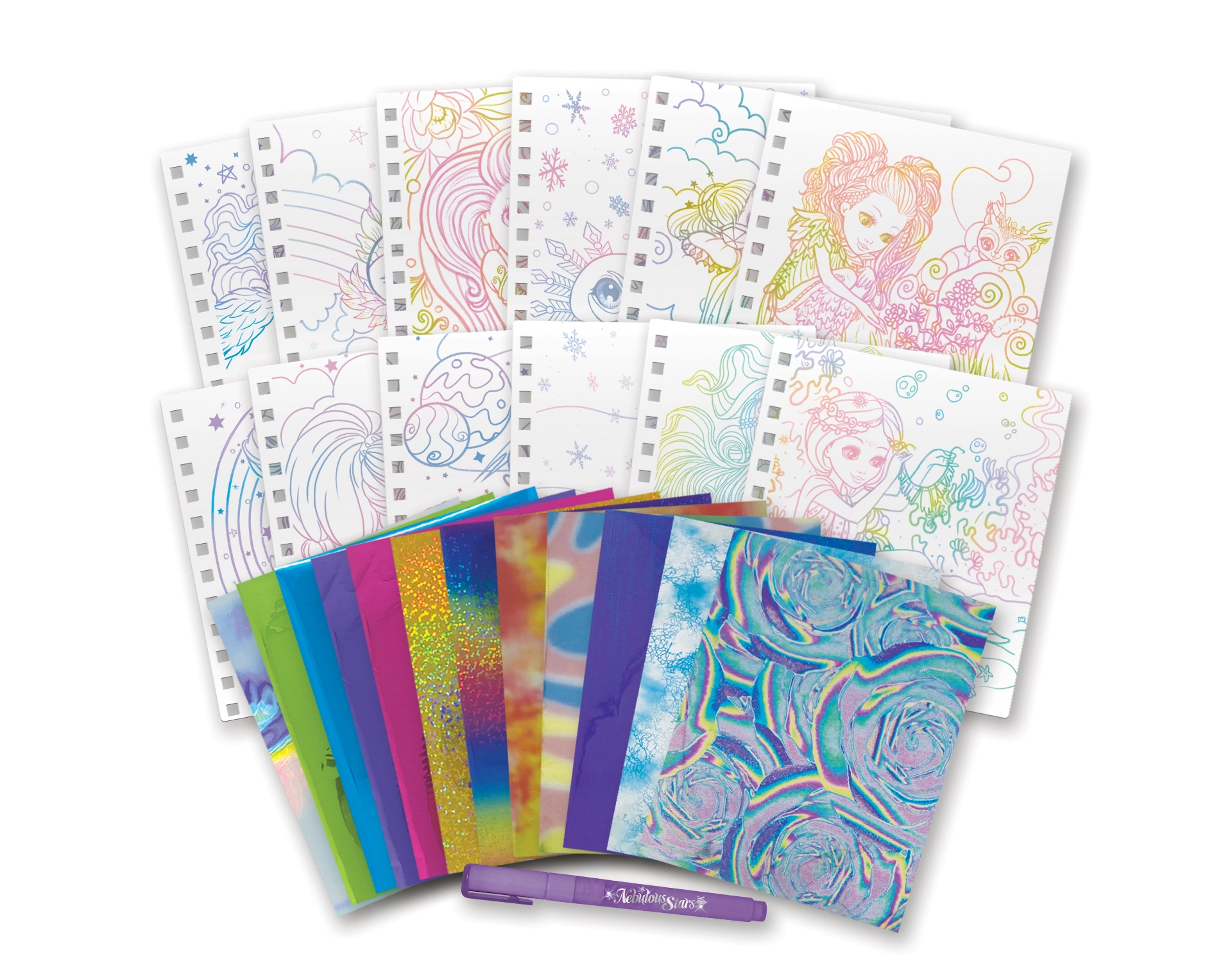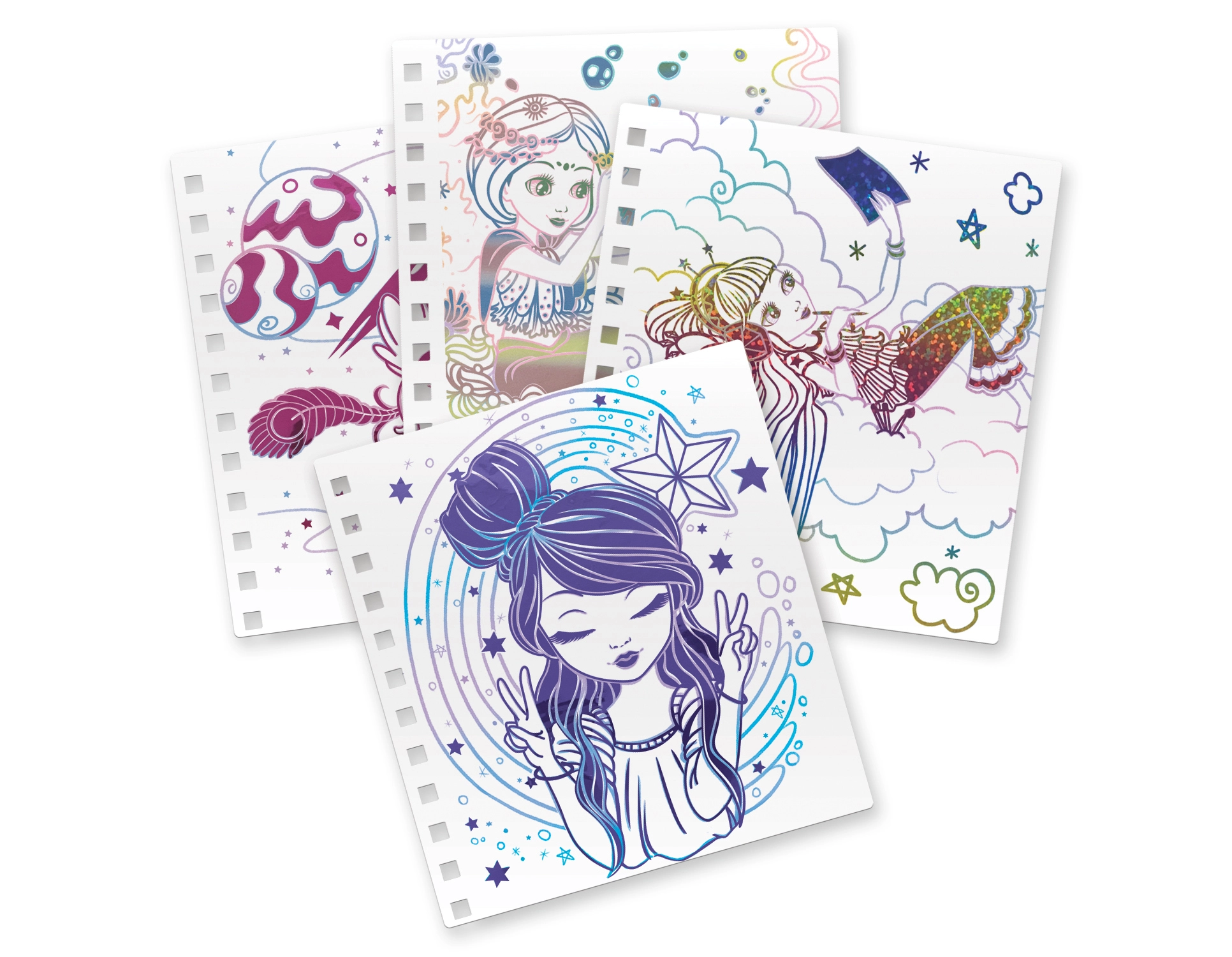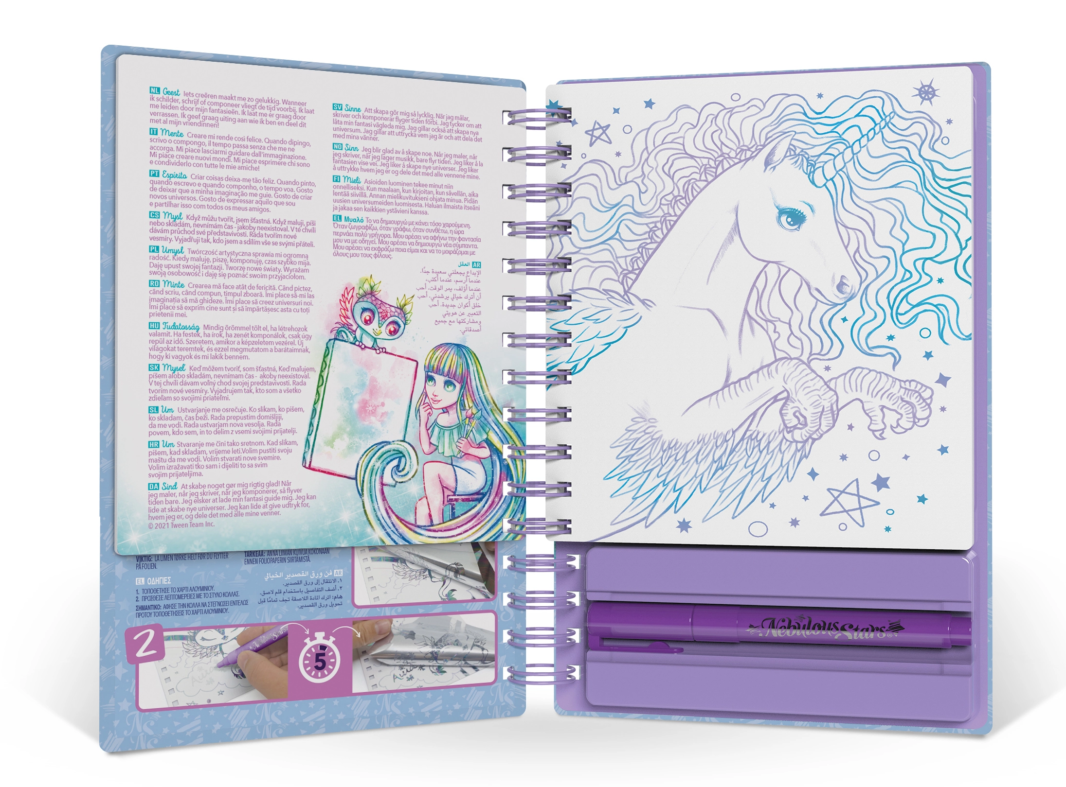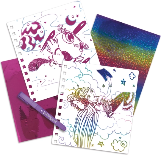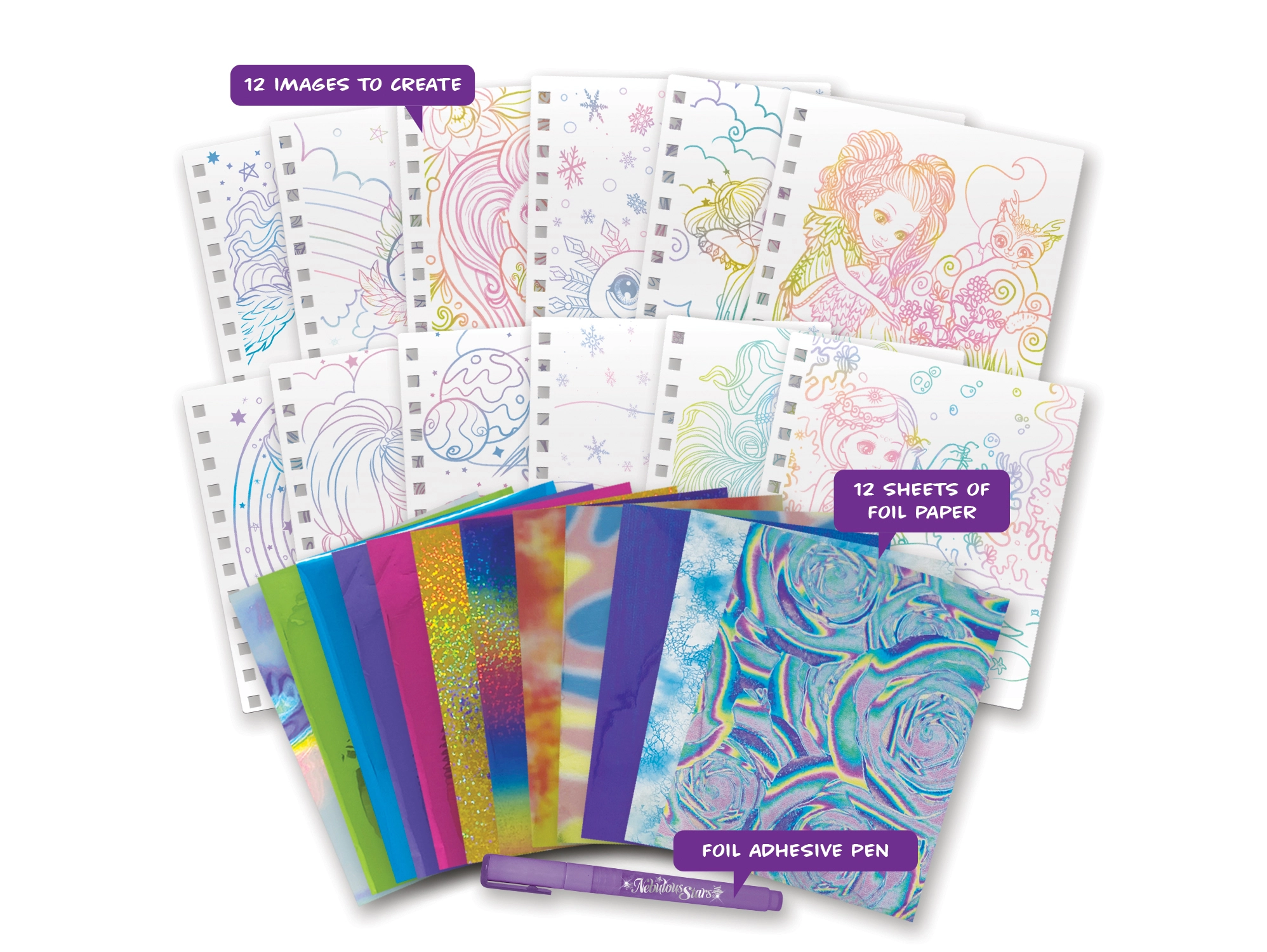 Tato originální výtvarná sada propojuje kouzelný svět NEBULOUS STARS s jednoduchou technikou dekorování pomocí metalických fólií. Stačí nanést lepidlo perem, přiložit fólii a jemně stáhnout – vznikne zářivý, třpytivý efekt, který promění každý obrázek v malé umělecké dílo.