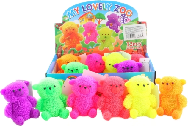 Roztomilý gumový medvídek se střapatým povrchem přináší spoustu zábavy i uvolnění. Uvnitř má blikající svítící kuličku, která se aktivuje při dotyku či pohybu. Díky měkkému a pružnému materiálu je ideální jako antistresová hračka pro děti od 3 let.