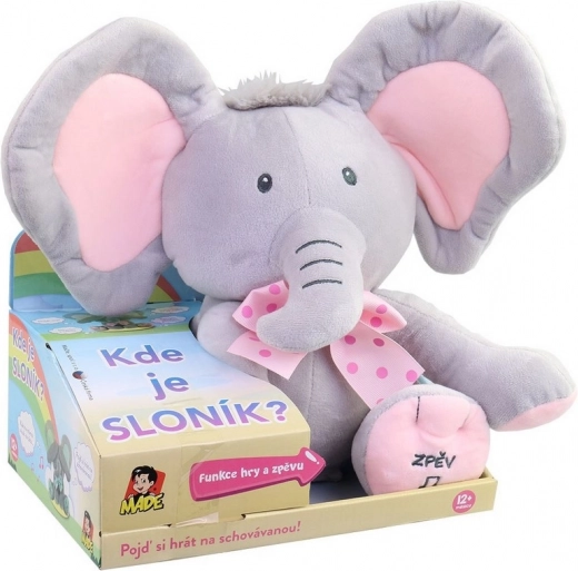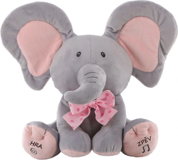 Interaktivní plyšový sloník 25 cm mluví česky, zpívá a hraje si na schovávanou. Mává ušima, vhodný od 12 měsíců. Skvělý dárek pro nejmenší.