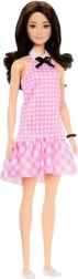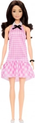 Panenka Barbie Fashionistas přináší moderní pojetí retro stylu inspirovaného lookem Quick Curl z roku 1973. Elegantní růžové šaty v gingham vzoru doplňuje černá mašle u výstřihu, bílá obuv a černý náramek – vše dohromady tvoří šik outfit pro každodenní i slavnostní hraní.