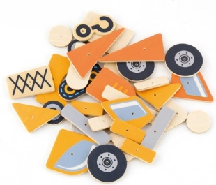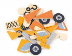 Pestré dřevěné tvary se zaoblenými hranami rozvíjejí kreativitu i jemnou motoriku dětí od 3 let.