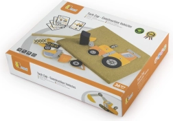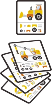 Karty s předlohami inspirují děti k sestavení bagru, jeřábu či náklaďáku a učí je postupovat systematicky.