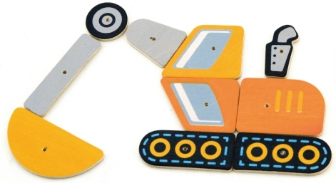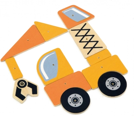 Objevte zábavnou a vzdělávací hru v duchu Montessori. Děti mohou reprodukovat předlohy stavebních vozidel nebo si tvořit vlastní nápady. Díly mají zaoblené hrany a předvrtané otvory, takže se snadno a bezpečně připevňují na korkovou tabuli.