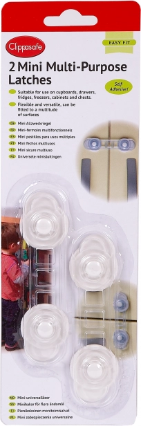 Chraňte své děti před nebezpečným obsahem skříněk a zásuvek. Mini víceúčelová pojistka CLIPPASAFE je navržena pro rychlé a spolehlivé zajištění nábytku i spotřebičů, jako jsou lednice či mrazáky. Díky flexibilnímu pásku funguje skvěle na zakřivených a nepravidelných plochách i v místech, kde se dveře otevírají v rohu.