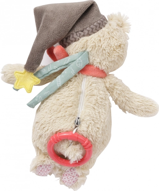 Plyšový medvídek Bruno mini je něžná hrací hračka pro miminka od narození. Po zatažení za kroužek se spustí uklidňující melodie, která podporuje usínání a vytváří pocit bezpečí. Jemné barvy a veselá spací čepička lákají k mazlení a rozvíjejí dětské smysly.