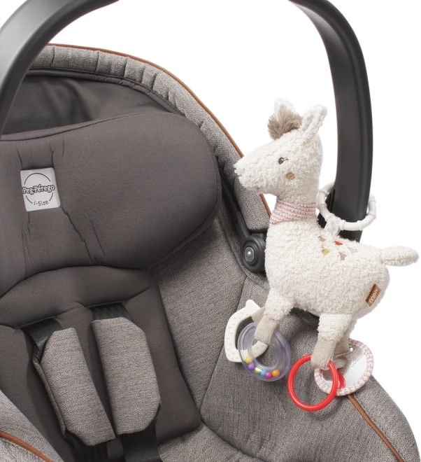 Roztomilá a mazlivá lama je zároveň aktivní hračka a ochránce na cesty. Na svých nožkách má zábavné prvky pro rozvoj motoriky, různé materiály pro smyslové vnímání a díky snadnému uchycení ji rychle připevníte na kočárek nebo autosedačku.