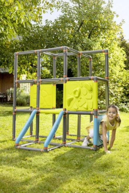 Robustní venkovní prolézačka pro děti nabízí modulární sestavení, snadnou montáž bez nářadí a vysokou stabilitu díky fixačním U kolíkům. Konstrukce z 246 dílů s UV ochranou, bezpečnými spoji (rozebratelnými pouze dospělou osobou) a maximální nosností 70 kg je ideální pro aktivní hraní na zahradě. Vyrobeno v Německu.