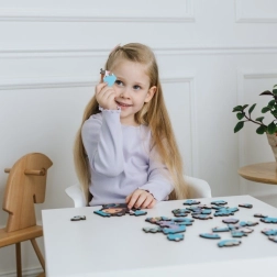 Nabízíme vám dřevěné puzzle, které přináší zcela nový rozměr skládání. Sada obsahuje 50 dílků, z nichž 10 je ve tvaru unikátních figurek, což přináší zajímavou výzvu při skládání. Zároveň oceníte kvalitu zpracování a detaily každého kousku, včetně ozdobného vzoru na rubové straně.