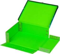 - Pevná konstrukce z laminovaného papíru s kovovými rohy pro vyšší odolnost.