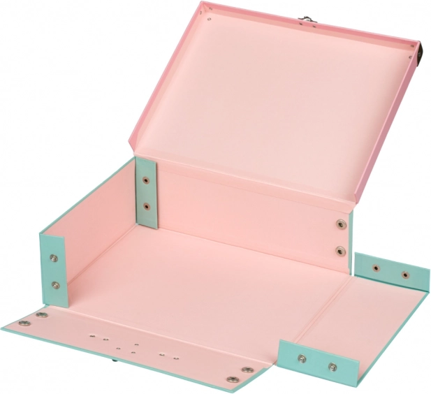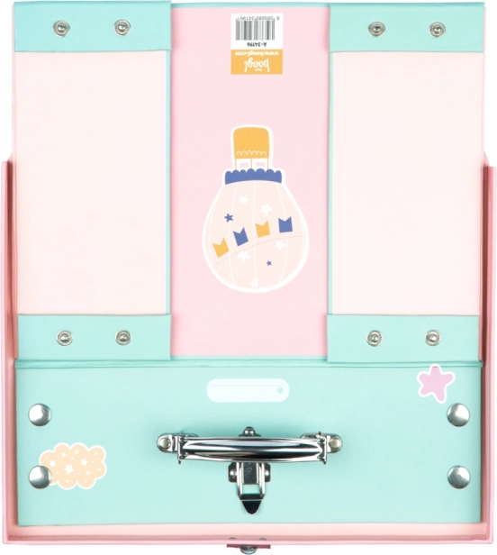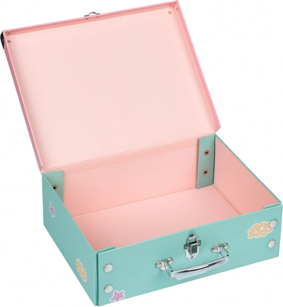 Kufřík je opatřen kovovým uchem a uzavíratelný klasickou přezkou. Unikátní systém patentek umožňuje snadné složení a rozložení, což usnadňuje jeho skladování, když není používán. Ideální pro děti a cestování, které zaručí bezpečnou a zábavnou přepravu jejich oblíbených hraček nebo potřeb do školy.