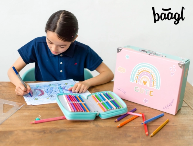 Skládací kufřík s barevným duhovým motivem je nejen esteticky příjemný, ale také praktický pro každodenní použití.