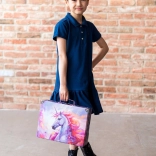 Kufřík je vybaven kovovým uchem pro pohodlné přenášení a uzavíratelný na klasickou přezku, což zajišťuje bezpečí při používání. Děti si zamilují atraktivní a hravý design, který je vhodný jak pro mazlíčky, tak i pro školní potřeby nebo hračky.